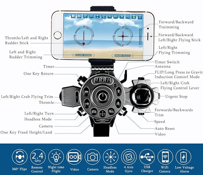 Gravity sensor ,control it as you want:Newest level sensor technology used, when transmitter is on level ,tilt the transmitter forward /backward/left/right ,then it will fly to the correspond direction.